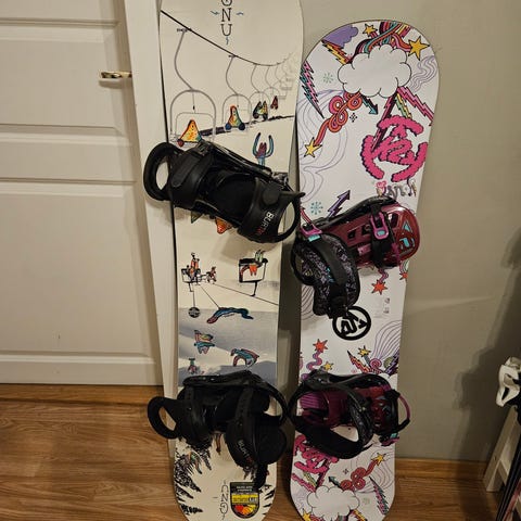 Bindinger fra Burton følger med( kostet 3000,-) å sette på.