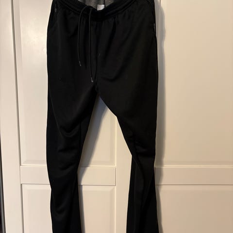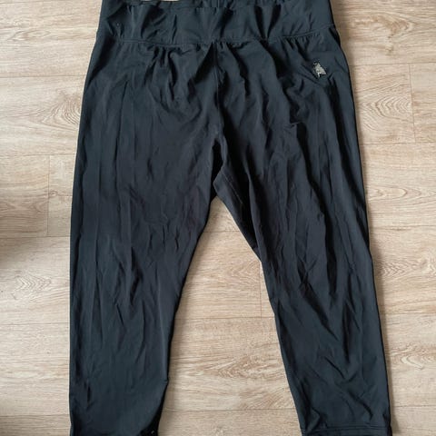 Treningsbukse for kvinner i størrelse L, egnet for fitness. Buksen har en grønn farge og detaljer i ribbestrikk på bena.