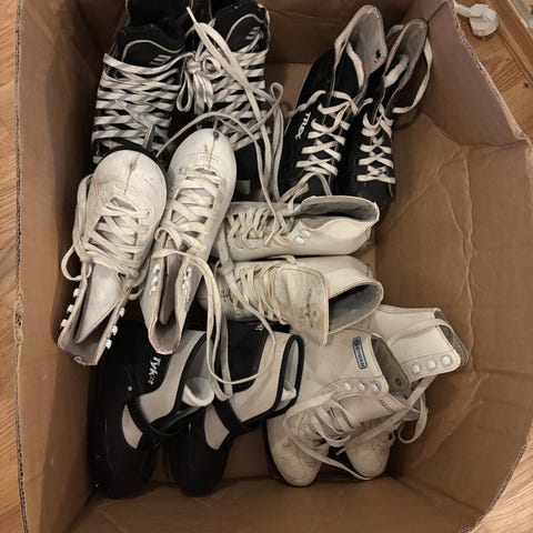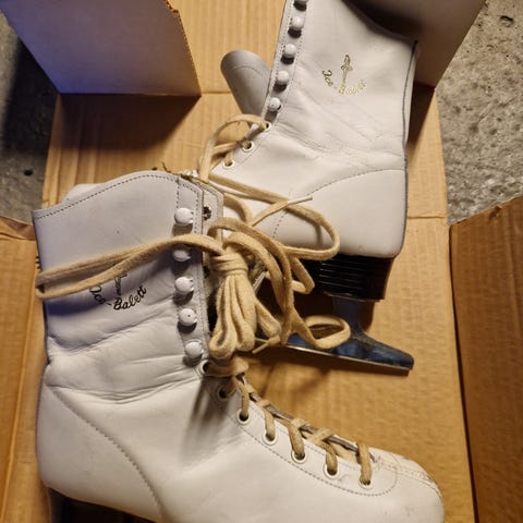 Gir bort noen eldre Ving Janet kunstløpskøyter i str. 39. Pløsen går litt i oppløsning, men mulig de kan brukes allikevel. Ukjent alder.