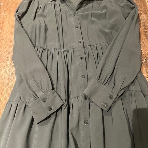 Va Vite Hverdagskjole i størrelse 44 for kvinner. Kjolen er grønn og laget av Victors. Egnet som en hverdagskjole. Knapp på armen slik at man kan brette den opp.