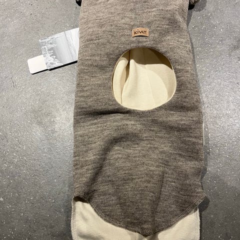 Kivat Ull balaclava i brunmelert farge, størrelse nr 2, unisex. Laget av ullmateriale som gir varme og komfort. Vindstopper på ørene.