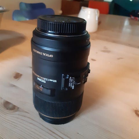 Lite brukt Sigma 105mm macroobjektiv til Sony FE. Fremstår i svært god stand. Brukt til maks ca. 1000 bilder.