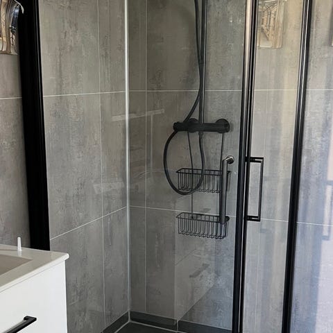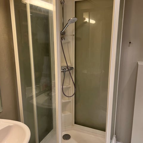 Dusjevegger i klart glass selges på grunn behov for større dusjrom