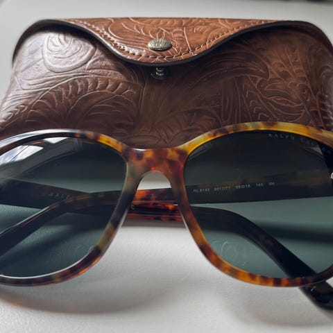 Stilrene briller fra Ralph Lauren med blåtransparent innfatning, i perfekt stand uten riper eller slitasje. Det sitter styrkeglass i dem (usikker på nøyaktig styrke, trolig + noe), så de passer best for deg som vil bytte glass hos optiker. Klassisk og tidløs modell av høy kvalitet.