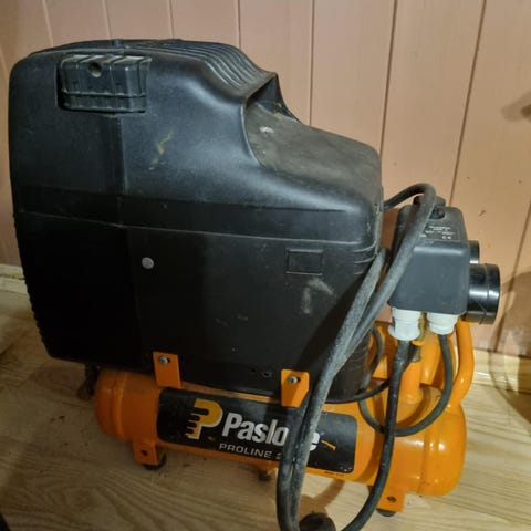 Paslode kompressor, stille gående, brukt kun per ganger, står uten brukt i garasjen lenge nå..følger med stor slange og spikerpistol og liten blåser