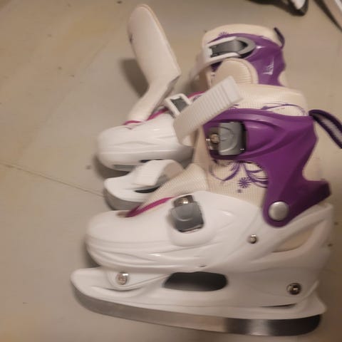 Barneskøyter i størrelse 35, hvit farge. Egnet for ulike skøyteaktiviteter. Kunstløp. Lite brukt.