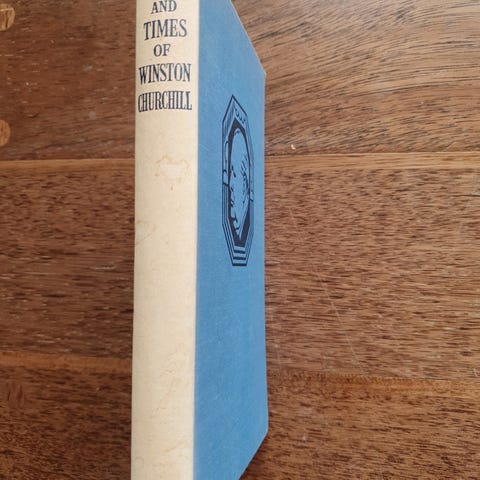 Winston S. Churchill Mot Seier bok med taler fra 1941 til 1945. Utgitt av J.W. Cappelens Forlag i Oslo. Innbundet med dekorativt marmorpapir og rød rygg.