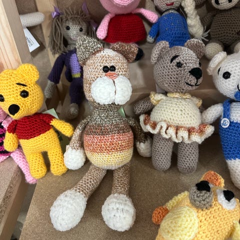Heklet ku bamse i brunt og beige