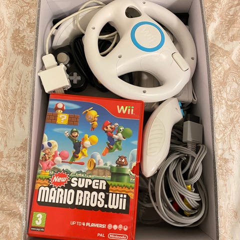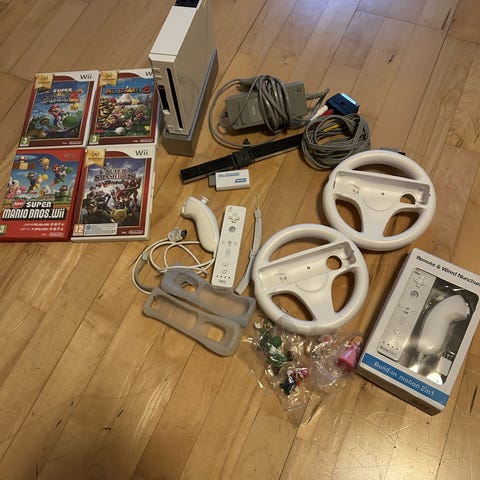 Fin brukt Wii pakke selges! Her er en varierende pakke med populære titler som Mario Kart, Wii Sports, Smash Bros og annet tilbehør 🎮