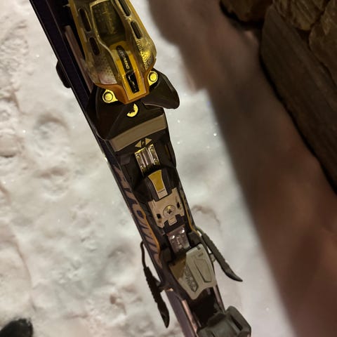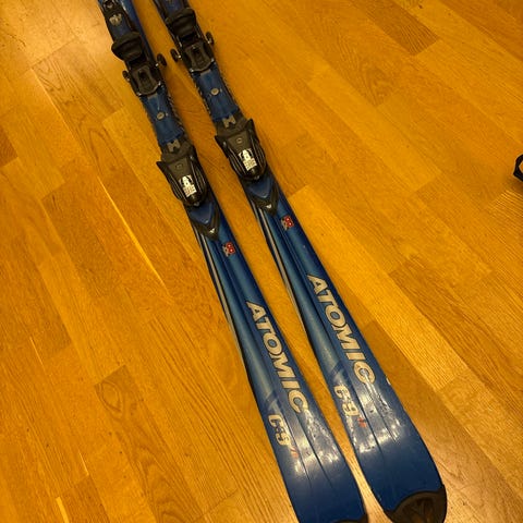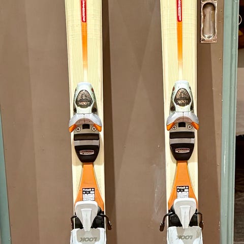 NB! Det er rust på en del av den ene frambindingen på en av skiene, dette er bare kosmetisk.