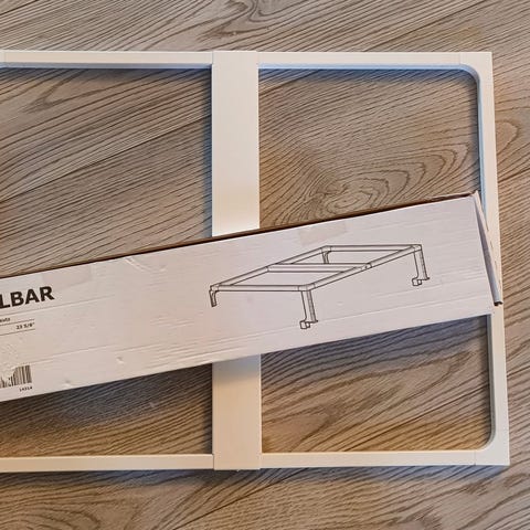 2. 2x hyller fra Ikea - en tidligere brukt som nattbord (med ben). Den andre har ikke ben