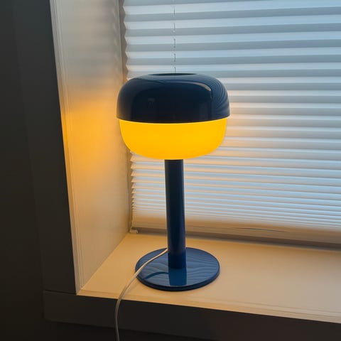 BLÅSVERK Bordlampe, blå, 36 cm med lyspære