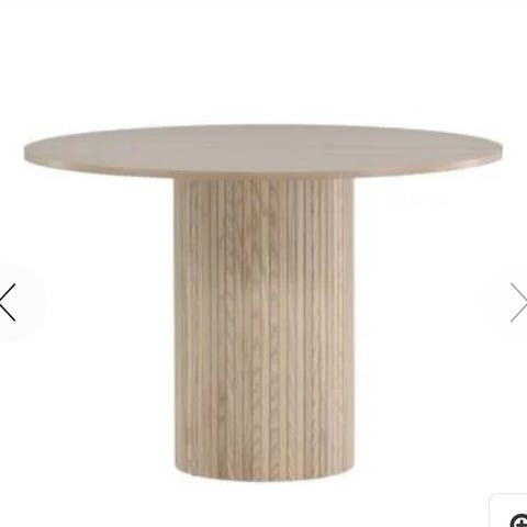 Selger et veldig pent og lite brukt rundt spisebord fra Skeidar med navn «saga spisebord». Diameter er 110 cm, og 75 cm høyt.