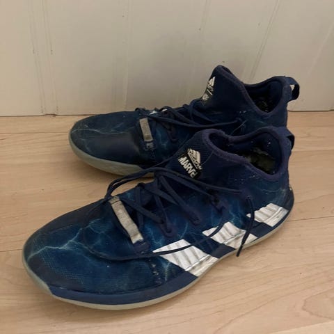 Adidas Stabil håndballsko i blå farge. Kjøpt for to år siden, brukt 2 treninger og var for store. Lagt vekk og tatt frem nå. Brukt en gang, var for små... Fremstår helt ubrukte, med unntak av det lille merket inni som man ser på det ene bildet. Nypris 1899,-.