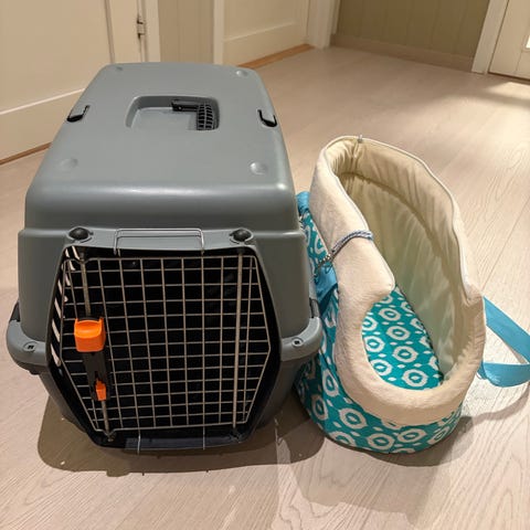 Sammenleggbar metallbur for kjæledyr, med mykt underlag