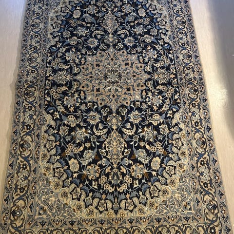 Nr: 24 ) Ekte Nain tett knyttet teppe med silke innslag fra iran.