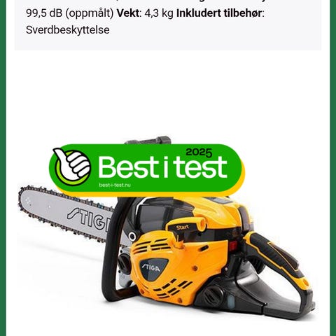 Alpina A3700 motorsag, trenger nok service. Må hentes.