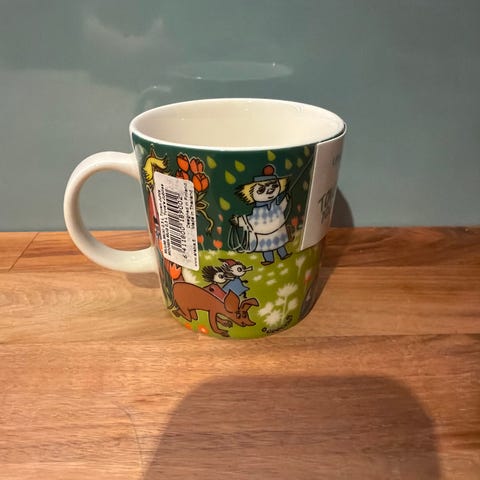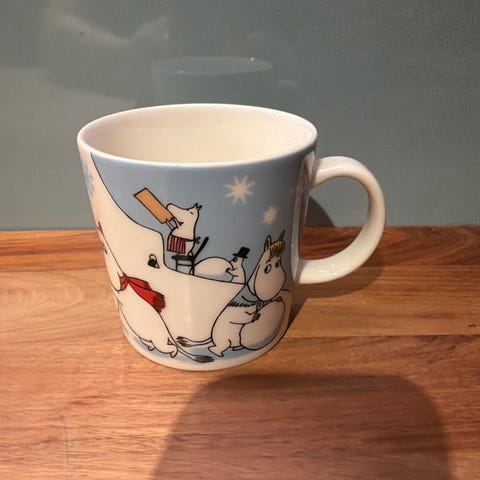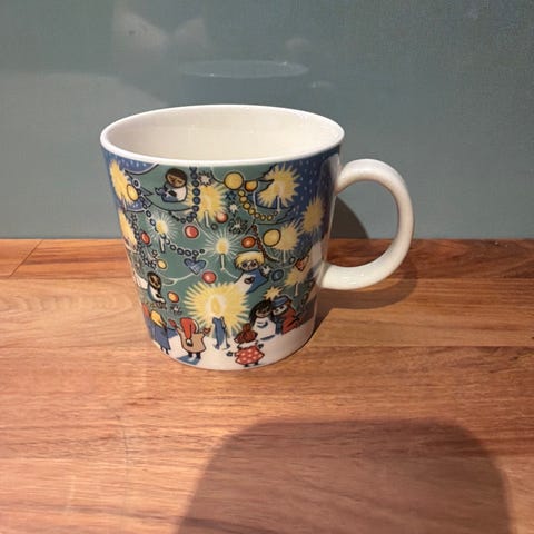 Mummikopp med motivet Juleoverraskelse. Utgått eldre kopp i fin tilstand.