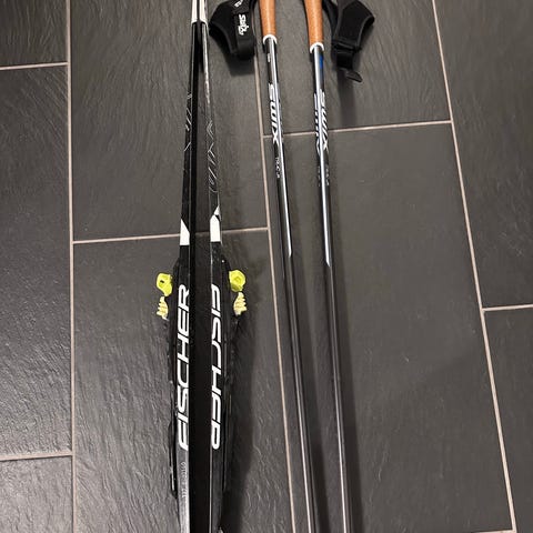 4 par ski smørefri. Fisher og Salomon 450,- pr.par. De andre 150 pr. par