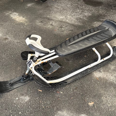 Laget for barn, med styre og sete for enkel bruk. Egnet for vinterlek og kjøring på snø.