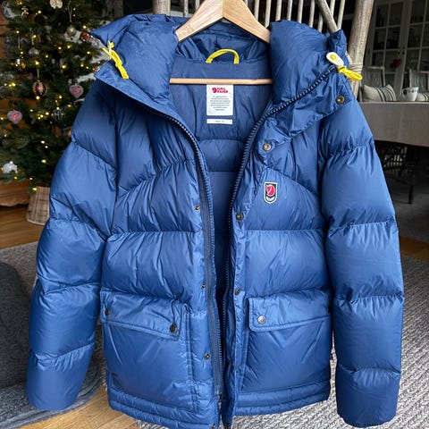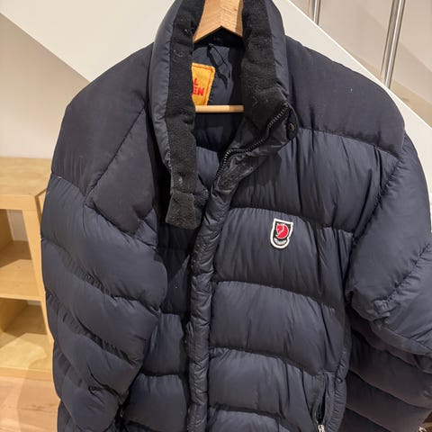 Fjällräven vinterjakke i størrelse S, laget av dunmateriale. Jakken er grønn og designet for menn. Egnet for kaldt vær og utendørs bruk. Nesten helt ny brukt 1 gang