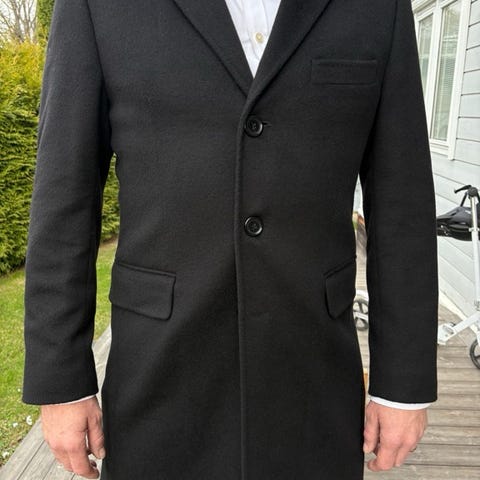 Lengde: 94 cm fra skulder. Innerlengde arm 43 cm