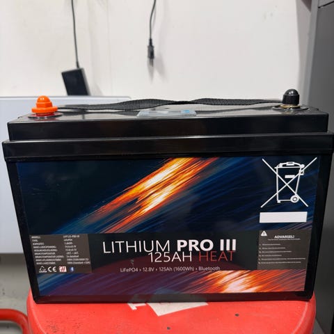 Lithium batteri (med bluetooth) selges siden vi ikke har bruk for den. Batterien fulgte med en campingbil vi kjøpte, men vi har ikke behov for de siden vi kjøpte en power station. Batteriene ble kjøpt tidlig i 2024 og ikke vaert I bruk. Vi har ingen kvitteringer til de.