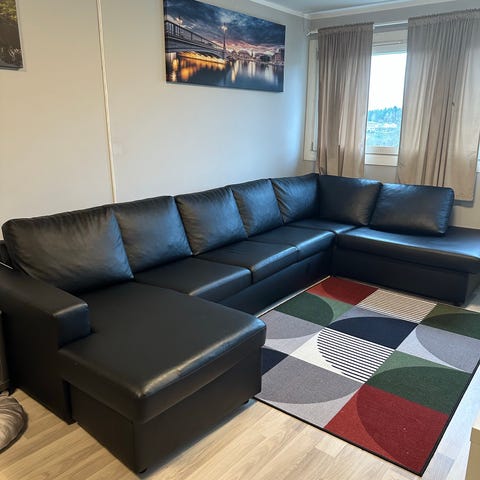 Grunnen til at vi selger den er at den ble litt for kort for stuen vår – ellers en sofa vi har vært veldig fornøyd med.