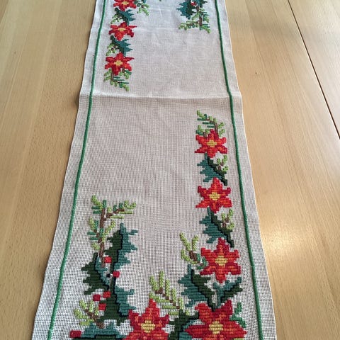 Vakker brodert jule løper blå bunn