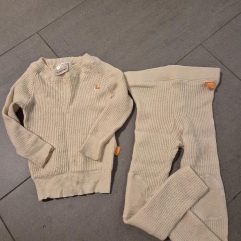 Fint brukt sett. Ingen hull, kun en liten tråd som har løsnet på buksen, se bilde. Selges 150kr. Ny pris 1200kr.