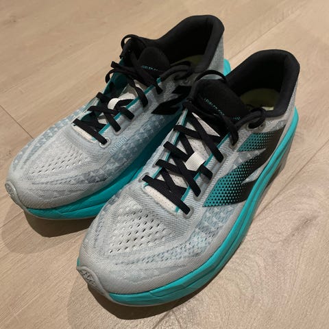 Selger mine nesten ubrukte New Balance FuelCell SuperComp Trainer V3. Kun brukt på to korte løpeturer. Selges da de er en halv størrelse for små for meg. Her får du mye sko for pengene 😊