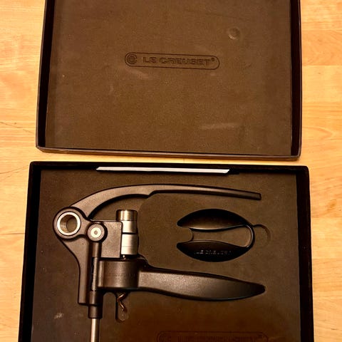 Helt ny og ubrukt vinåpner i original eske. Elegant og solid modell med tilbehør. Perfekt som gave eller til eget bruk. Aldri tatt i bruk. Ny pris er på over 500kr.