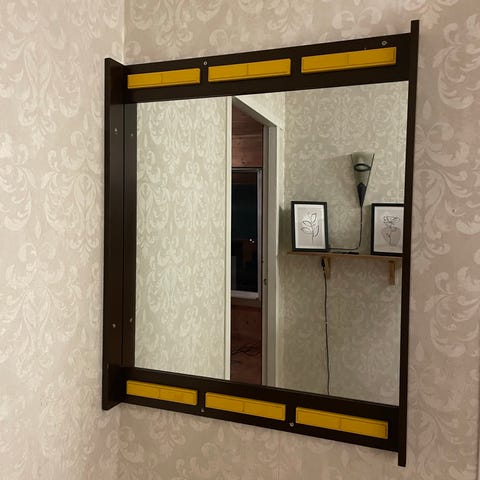 Stort og pent speil selges, henges fra to henglser. Se på på bildene.