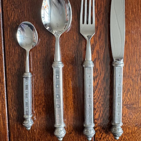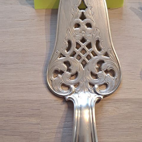 To antikke brødkniver med svarte håndtak. Christiania Glassmagasin.
