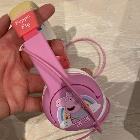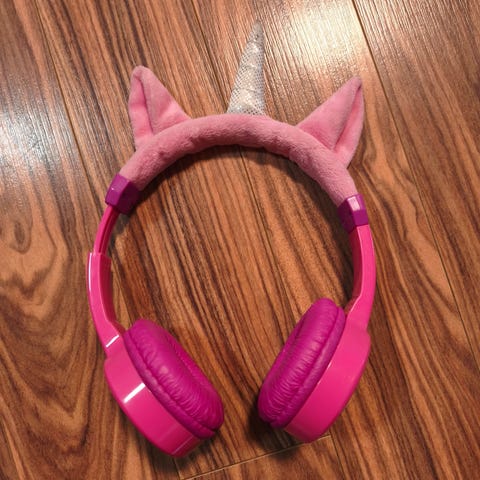 OTL Technologies barnehodetelefoner i rosa og lilla farger. Hodetelefonene har polstrede øreputer og justerbar hodebøyle, egnet for barn. Inkluderer kabel for tilkobling. Støygrense på 85 db. Pent brukt og lite brukt. Har ladet de og de fungerer helt fint. Knappen på siden holdes inne i 3 sek, så lyser et blått lys. Tilknytt mobiltlf med Bluetooth.