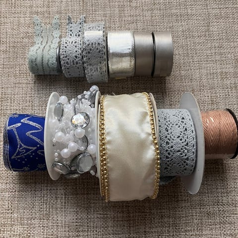 Div. pyntebånd med glitter og gull. Selges samlet.