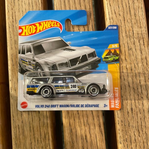 Selges Hot Wheels Super Treasure Hunt Volvo 240 Drift Wagon. Modellen er ny og uåpnet. Kortet er i svært god stand. Men på bildene kan man se noen små sprekker i blisteret.