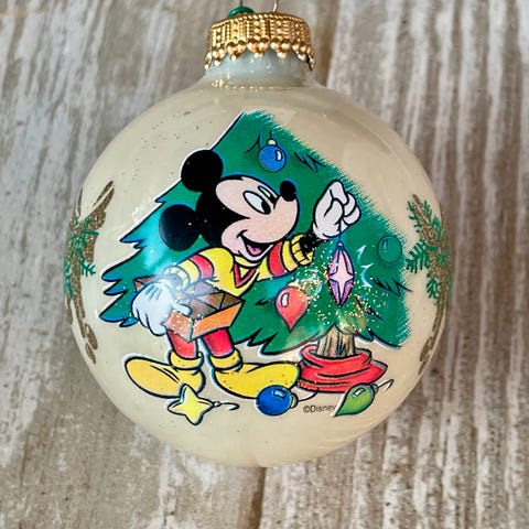 Sjelden julekule laga i glas, frå 1990-talet. Ca. 7 cm i diameter. Fargen er mint. Disney samleobjekt merka med C Disney. Kula er heil, men har små bruksspor i lakken. (Sjå bilder) Sender, samsender gjerne, gi meg evt. beskjed.
