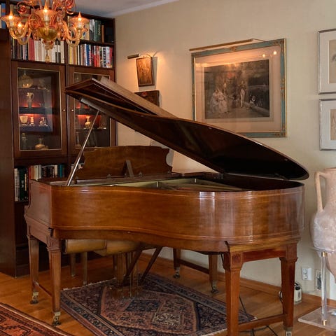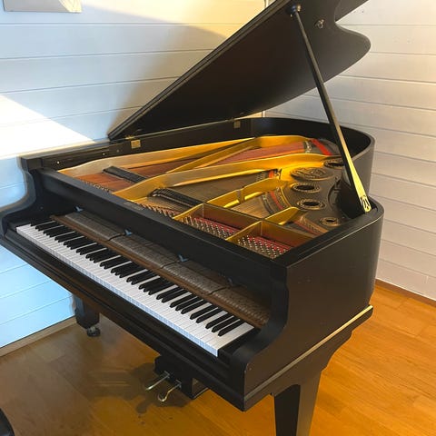 Flygelet har hatt siste gjennomgang hos Ramum Piano og fremstår i svært god kosmetisk stand.