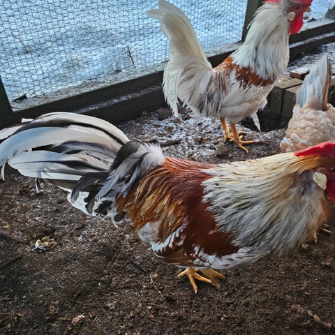 To snille haner gis bort. Blanding av Brahma og Hedemora. Klekket august 25.