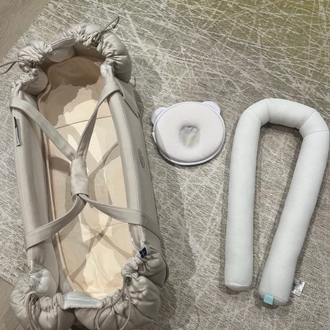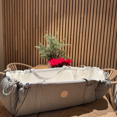 Najell SleepCarrier X. Den passer i alle barnevogner og kan enkelt foldes sammen for reise, slik at du kan flytte den sovende babyen fra babyseng til barnevogn uten å forstyrre luren. Designet for å gi komfort og støtte til barnet under bæring. Juster størrelsen etter hvert som babyen din vokser, og åpne den helt for å få en romslig lekematte på 111 × 66 cm – perfekt for tid på magen.