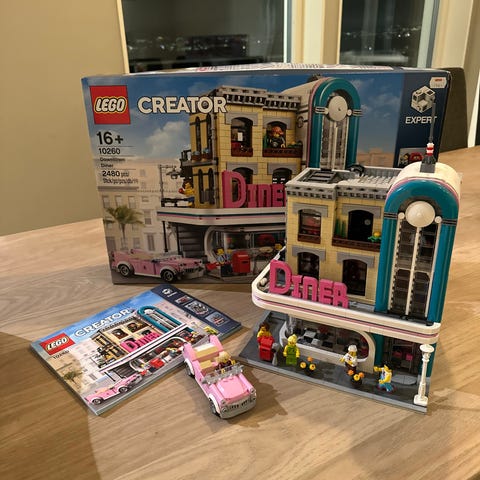 LEGO Icons Slott byggesett med flere tårn og porter, inkludert minifigurer av riddere. Byggesettet inneholder detaljerte elementer som flagg og kanoner, designet for barn fra 8 år og oppover.