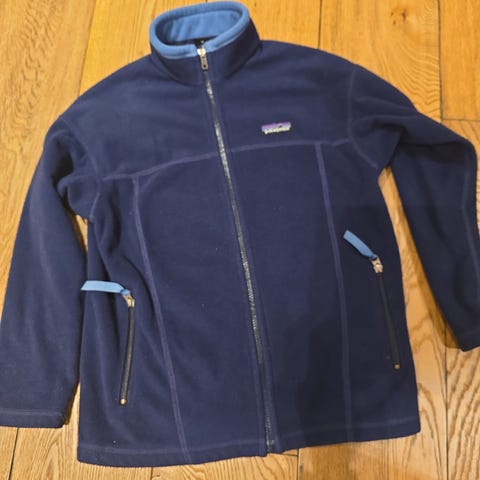 Det er en jakke son man kan vrenge, så det er fleece-jakke på den ene siden å og vanlig dunjakke på den andre siden.