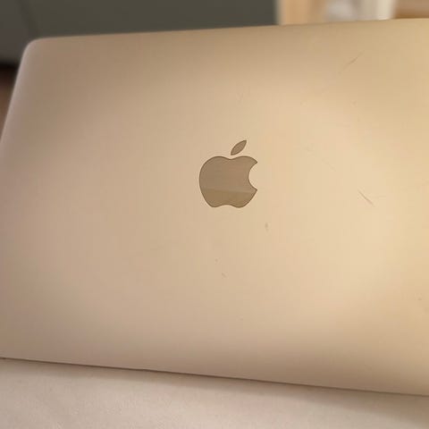 Apple MacBook Air bærbar PC med innebygd tastatur og skjerm. Enheten har et kompakt og lett design, egnet for bærbar bruk.