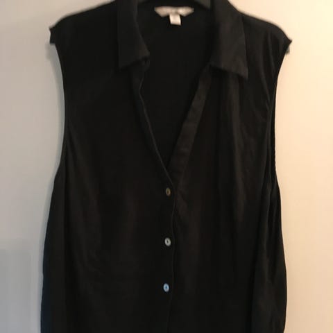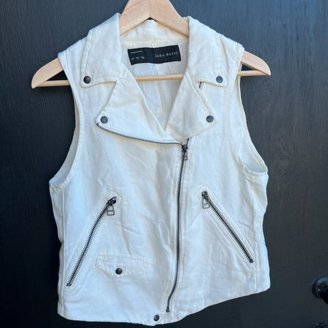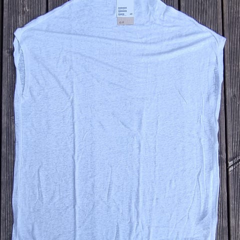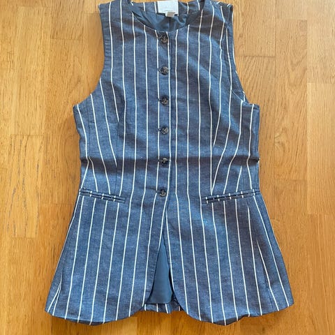 H&M vest i linblanding, hvit farge, størrelse 32. Er uten ermer og har knapper foran. Passer for kvinner.helt ny med lappen på(: ny pris 429kr.