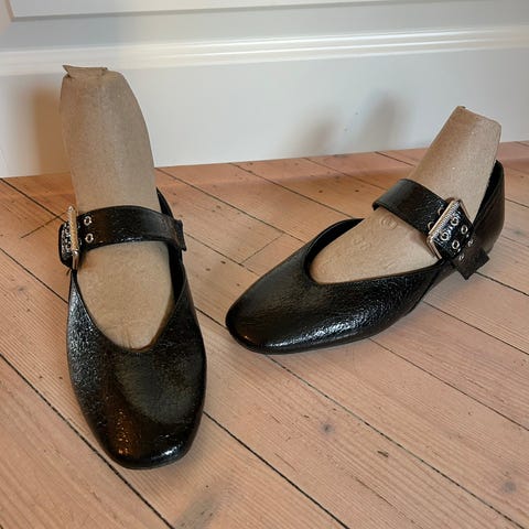 Zara ballerinasko i størrelse 40, svart farge med dekorative nagler. Skoene er laget i et materiale som gir et stilig og robust utseende.