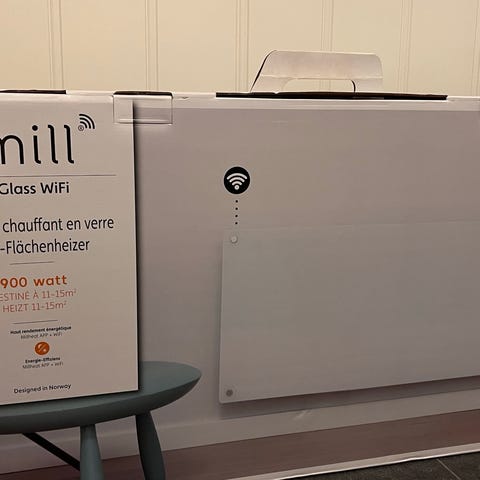 Selger 2 stk. av Mill glass panelovn, begge er 600W.