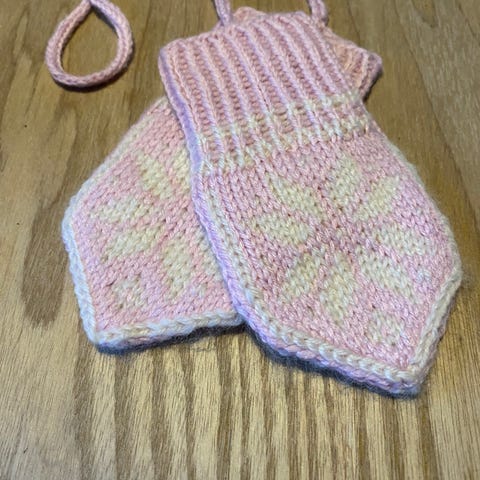 Strikka selbuvotter til baby str 6-9 mnd.