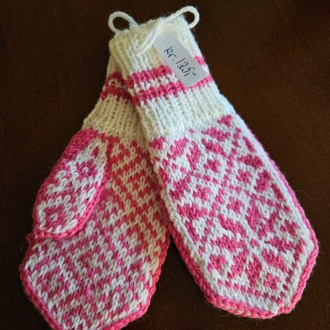 Strikka selbuvotter 6-9 mnd