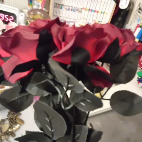 3 stk nydelige røde plast roser fra Roggens. Helt nye med lappen på.